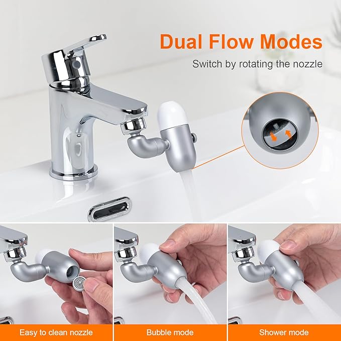 Faucet Extender with Pressurizing Aerator, 720° Swivel, 2 Spray Modes 🔄🌪️